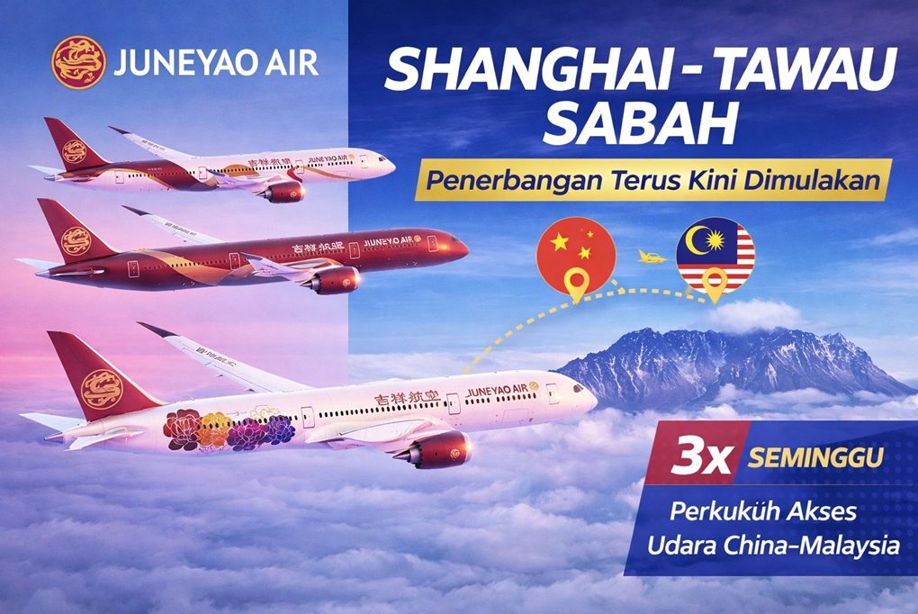Juneyao Air Buka Laluan Terus Shanghai–Tawau, Sasar Lonjakan Pelancong China ke Sabah