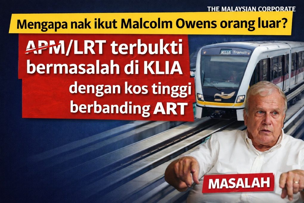 ART Vs APM: Mengapa nak ikut Malcolm Owens orang luar? APM/LRT terbukti bermasalah di KLIA dengan kos tinggi berbanding ART