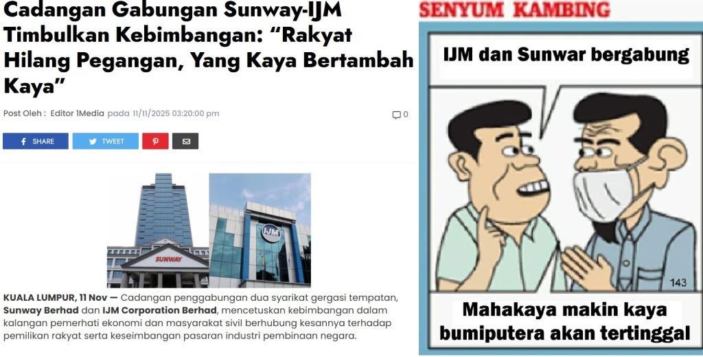 Jadi, mengapa kita mempertimbangkan penggabungan yang berisiko menjadikan IJM sebagai anak syarikat dalam empayar korporat Sunway? Mengapa kita membenarkan aset strategik — yang dibina atas kepercayaan awam dan modal Bumiputera — diserap masuk ke dalam konglomerat yang hanya menjawab kepada bilik lembaga pengarah swasta, bukan keutamaan negara?