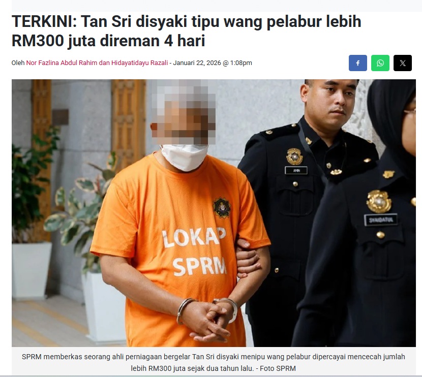 Teka teki mengenai siapa Tan Sri yang ditahan SPRM dengan wang bernilai RM300 juta sudah terjawab.