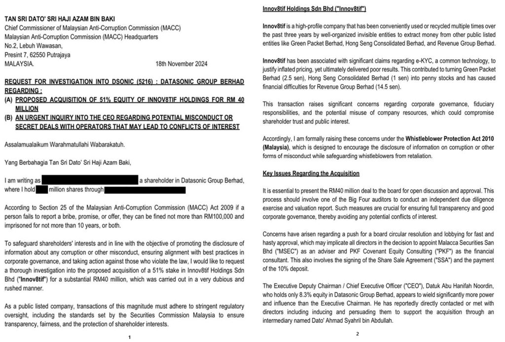 SKANDAL PEMBELIAN SYARIKAT INNOV8TIF BERNILAI RM40 JUTA DARIPADA REVENUE GROUP BHD